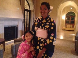お土産に浴衣をプレゼント、今日は自分で着付けをして披露